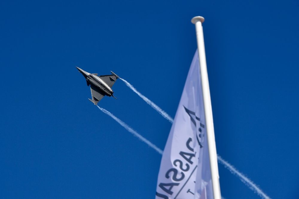 2017年6月19日,在法国巴黎近郊的布尔歇机场,达索公司的“阵风”战机参加飞行展示。(新华社记者陈益宸摄)