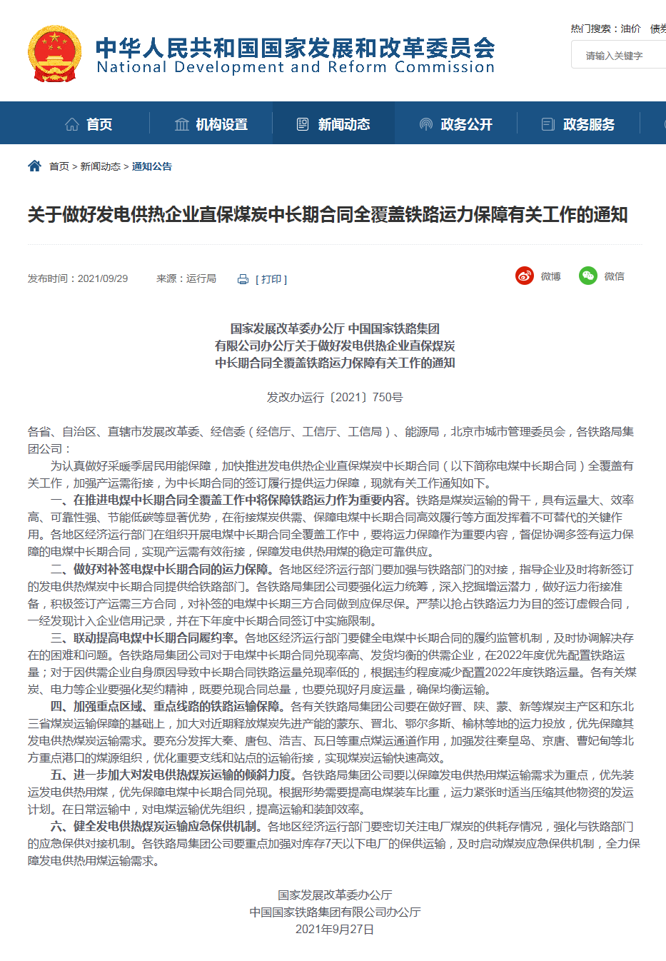 央视网消息:据国家发改委网站29日消息,国家发改委、中国国家铁路集团有限公司办公厅发布《关于做好发电供热企业直保煤炭中长期合同全覆盖铁路运力保障有关工作的通知》提出,进一步加大对发电供热煤炭运输的倾斜力度。
