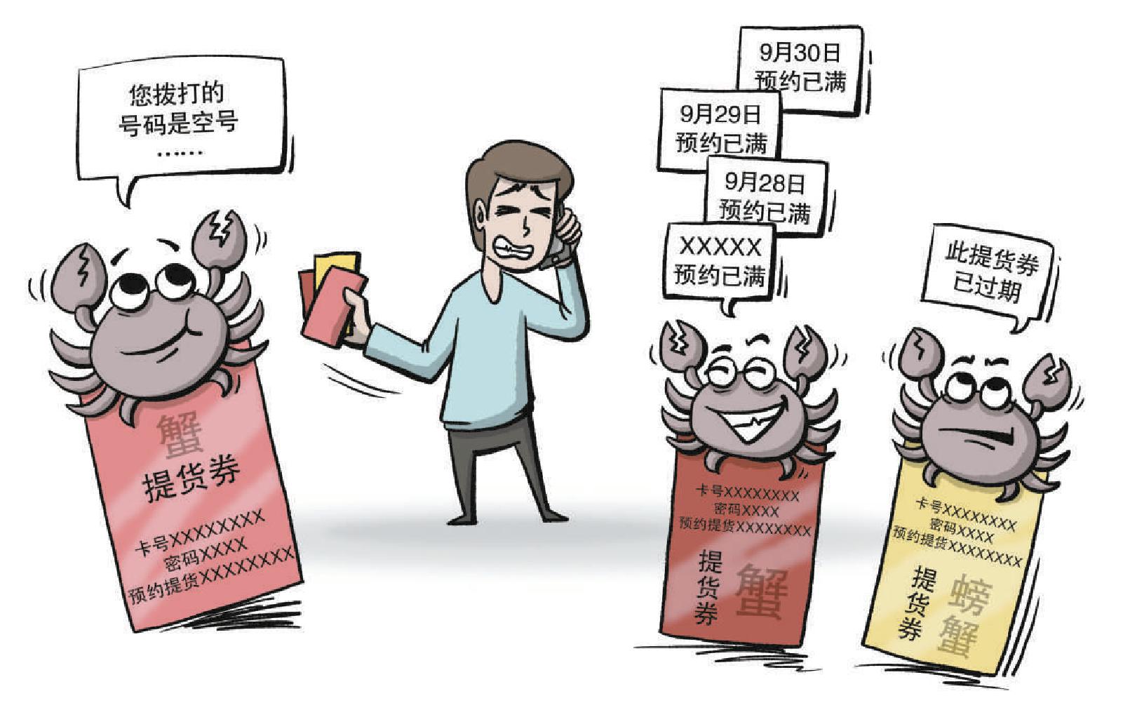还有的蟹卡,尚未使用就已不见踪迹。几场秋雨过后,周燕忽然想起去年“双十一”前买的那张蟹卡。“当时促销打折只要78元,觉得有6只螃蟹很划算。自己吃,哪怕小点儿也不嫌弃。”收到蟹卡后她预约提货,却始终未能成功。“每次点进去就显示‘预约已满’,约了三四次没约上,螃蟹也过季了,就想着明年再说吧,结果根本不记得塞在哪个角落了。”