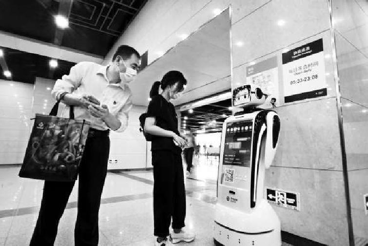 本报讯(记者孙宏阳 实习生吴楠)“儿童身高多少可以免费乘坐地铁?”“首班车是几点?”“携带导盲犬如何乘坐地铁?”今天,在4号线和16号线国家图书馆站,3台科技感十足的地铁车站智能服务机器人正式“上岗”,为乘客提供出行查询、带路及运营提示等智能服务。