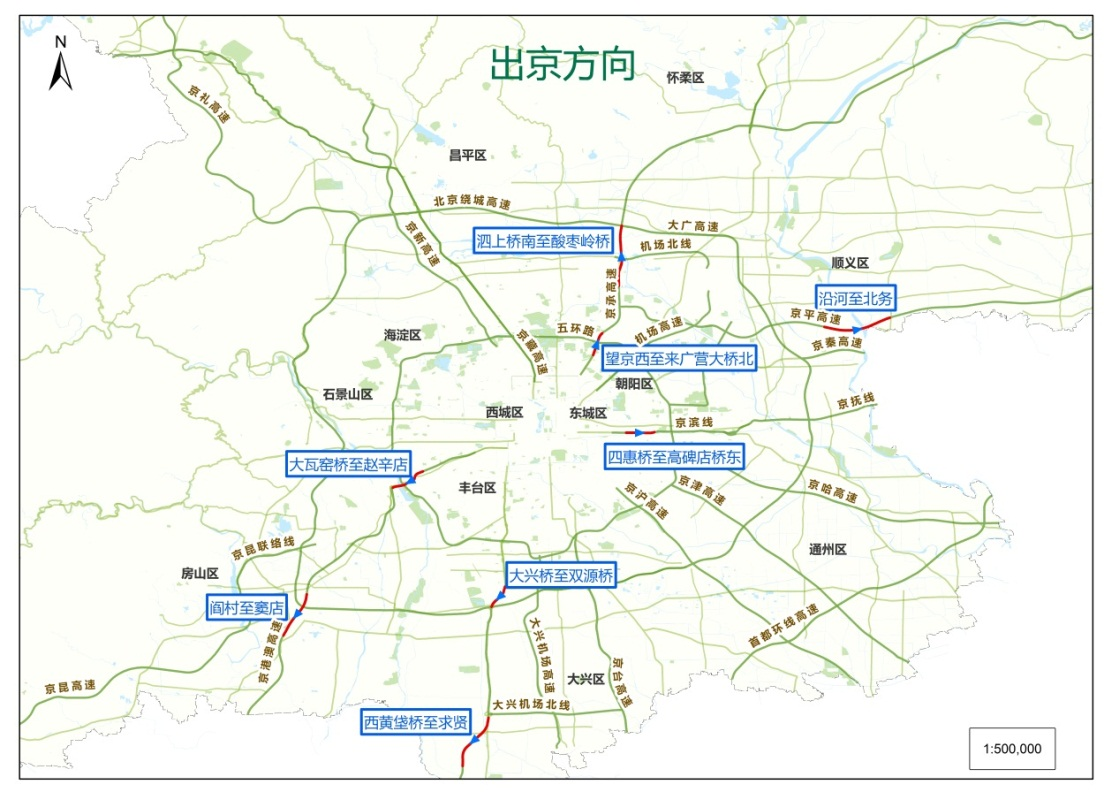 10月1日、2日交通压力主要集中在出城方向。10月3日至5日交通压力总体有所缓解,但近郊或市内热门景点、商圈、休闲娱乐场所周边交通压力较大,仍将可能出现局部拥堵排队的情况。10月6日、7日陆续迎来返程高峰。其中,7日返京压力尤为突出,预计14时至20时高速公路进京方向车流量持续较大。
