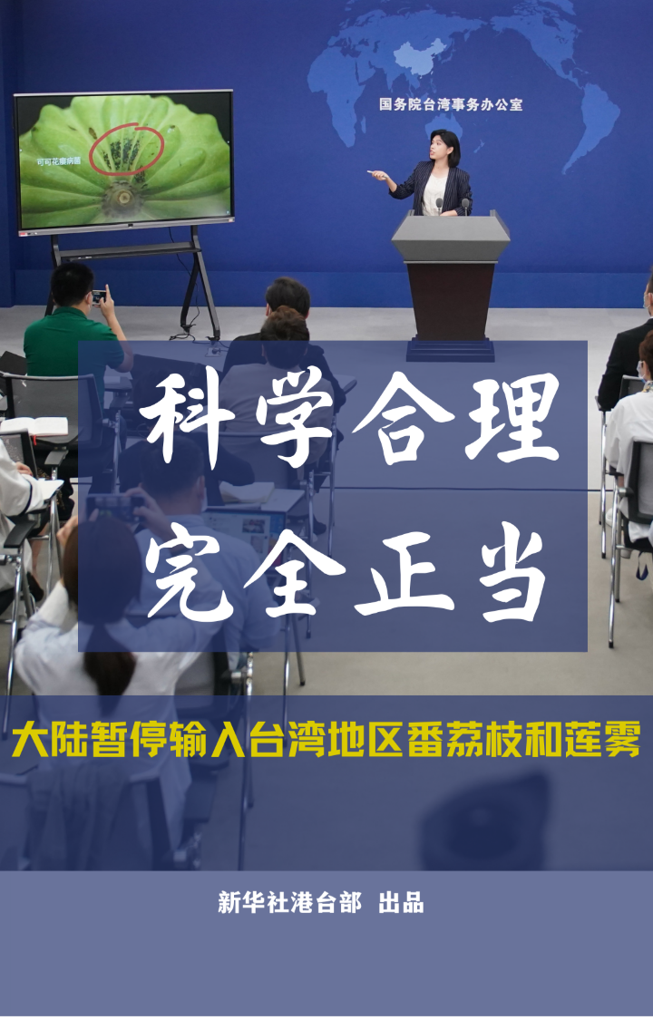 新华社北京9月29日电(记者刘欢、陈舒、石龙洪)国台办发言人朱凤莲29日在例行新闻发布会上应询指出,大陆暂停台湾地区番荔枝和莲雾输入,是为了保护农业生产和生态安全、保护民众的切身利益,科学合理、完全正当。民进党当局应切实负起监管责任,从源头上解决相关问题,不要再搞政治操弄。