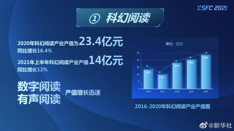 【今年#上半年我国科幻产业产值超360亿元#】2021中国科幻大会最新发布的《2021中国科幻产业报告》显示,今年上半年,我国科幻产业产值已达362.92亿元。其中,上半年科幻阅读产业产值14亿元,同比增长12%,数字阅读、有声阅读产值增长迅速。(记者温竞华、张泉)