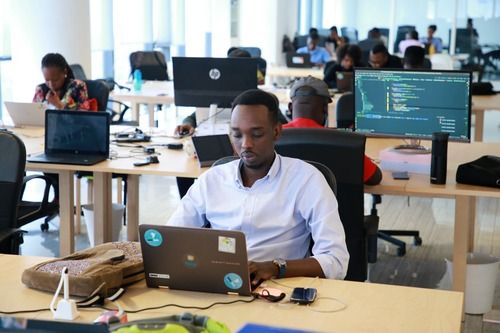 在卢旺达首都基加利,卢旺达电商公司HeHe的工作人员在公司内办公。新华社记者吕天然摄