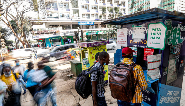 人们在肯尼亚首都内罗毕市中心一处M-Pesa代理网点办理业务。新华社记者张宇摄
