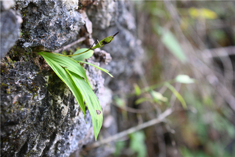 生长在石缝中的华白及植株(新华社发,蒋宏 摄)