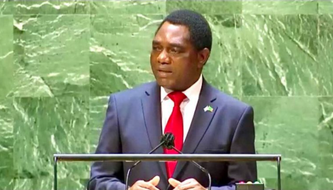 △赞比亚总统希奇莱马在联合国大会一般性辩论上发言