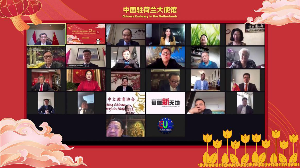 中国驻荷兰大使馆举行庆祝中华人民共和国成立72周年线上庆典