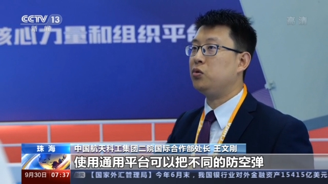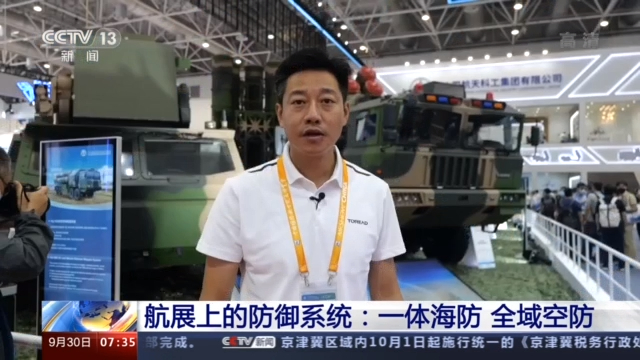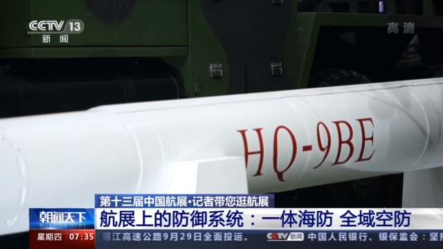 总台央视记者 李宁:在本届航展上,防务展区也是一大亮点,在防空体系展区里,各类远程、中远程、中程、近程导弹武器系统一起组成了全空域的防空体系。
