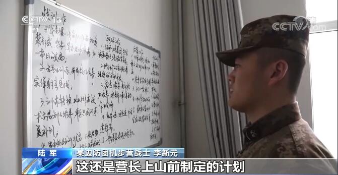 陆军某边防团机步营战士 李新元:看着这个白板,这还是营长上山前制定的计划,到现在我也不舍得擦。