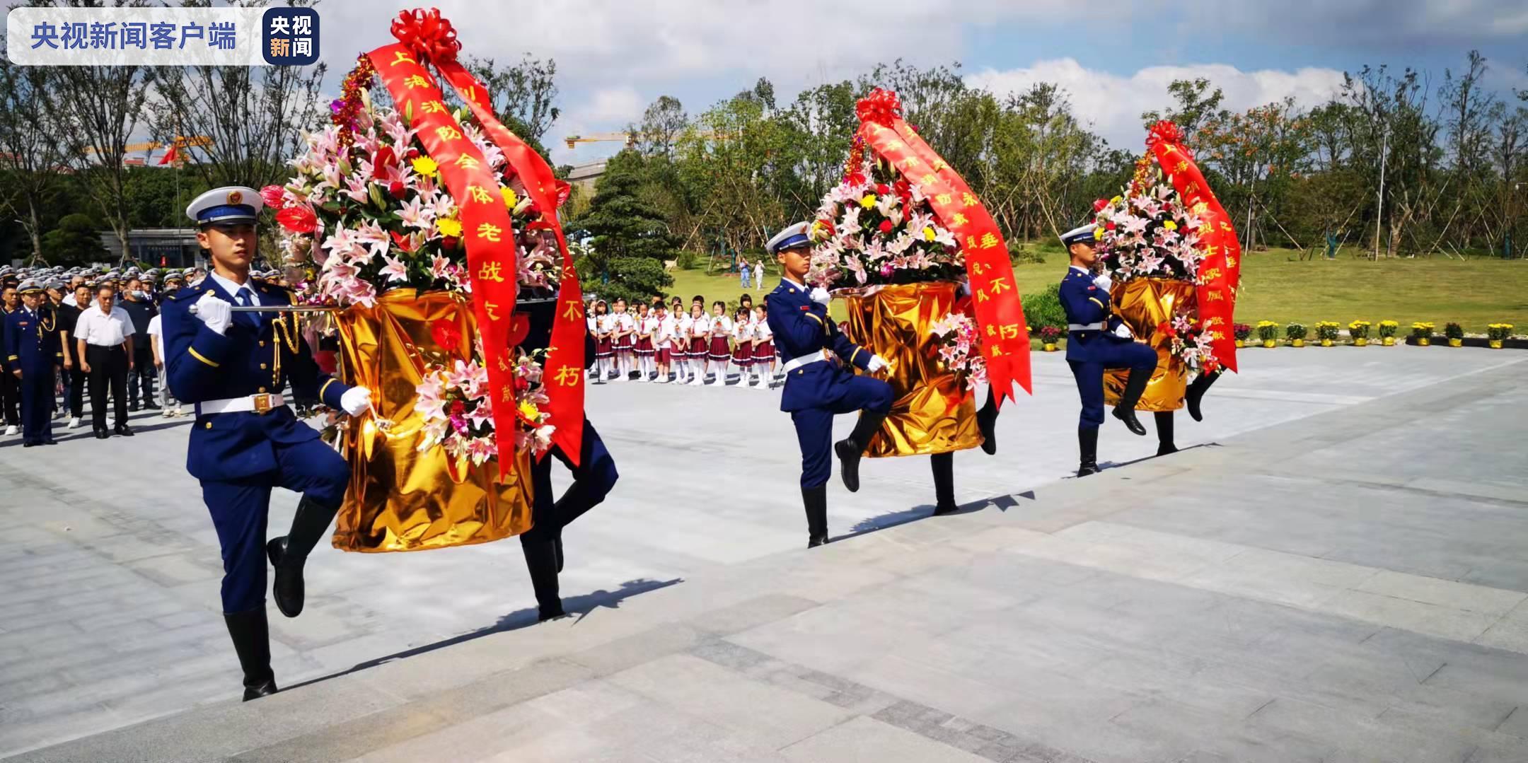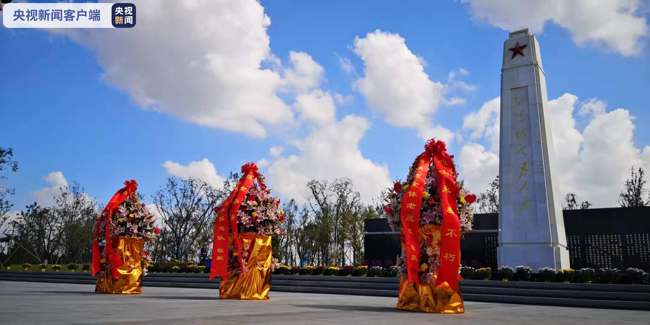 宿迁市在宿北大战马陵山革命烈士纪念塔广场举行向英雄烈士敬献花篮仪式。市领导以及500多名干部群众代表参加了纪念活动。(总台记者 吴睿)