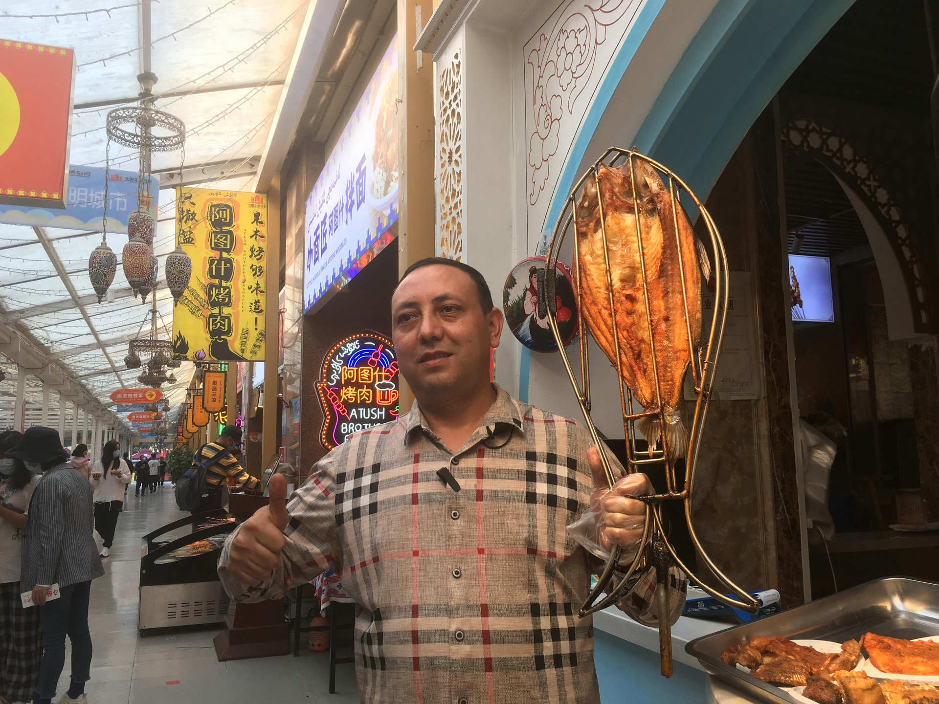 在大巴扎美食街,阿卜杜力木·阿卜杜热合曼则开了一家烤鱼店,不小心还成了大巴扎的“网红”,也让家里人过上了好日子……