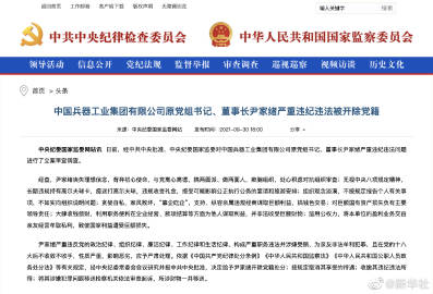 【中国兵器工业集团有限公司原党组书记、董事长#尹家绪严重违纪违法被开除党籍#】
