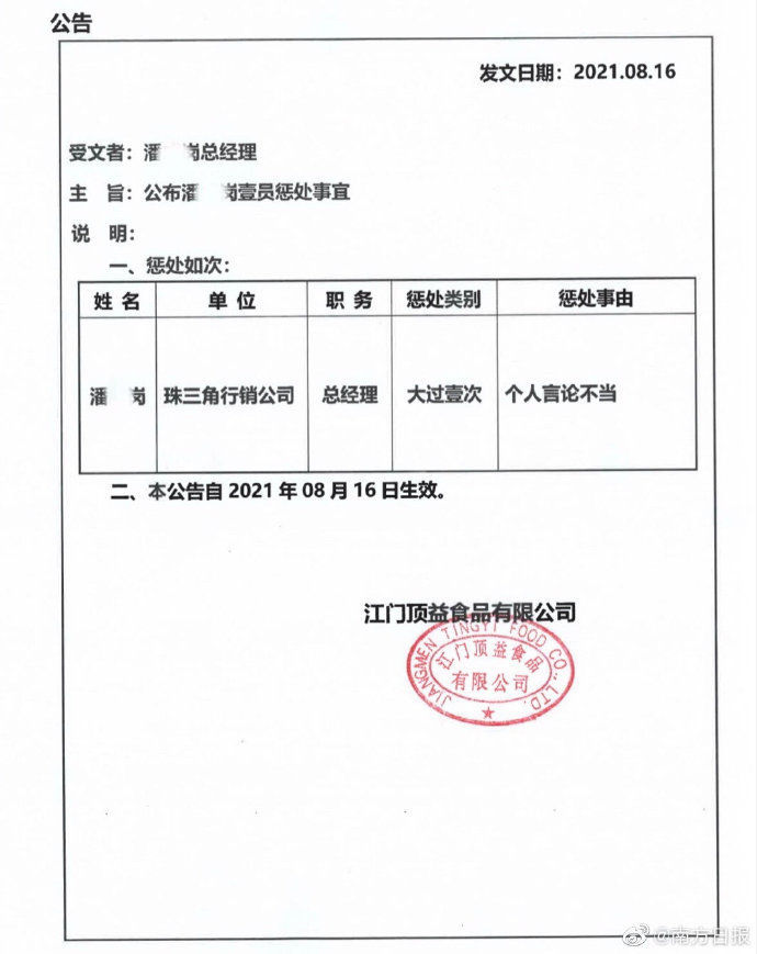 康师傅内部员工向南方日报记者报料称,在今年6月底广东疫情防控最紧张之际,康师傅方便面珠三角行销公司总经理潘某岗在给员工开会时,出现了涉疫情不当言论。详情>>>