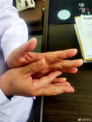 【心疼!#戴着塑料手套的战疫护士#】面对新冠肺炎疫情的侵袭,黑龙江省绥化市北林区第一人民医院护理部主任崔红平连日来奋战在防控一线。由于在采集核酸样本等工作中需要不断用消毒液洗手,崔红平的手因过敏而破皮、红肿,她不得不戴上塑料手套保护双手。国庆节将至,像崔红平一样的很多医护工作者还要继续在黑龙江等疫情防控一线奋斗,向他们致敬!(记者杨喆、侯鸣)