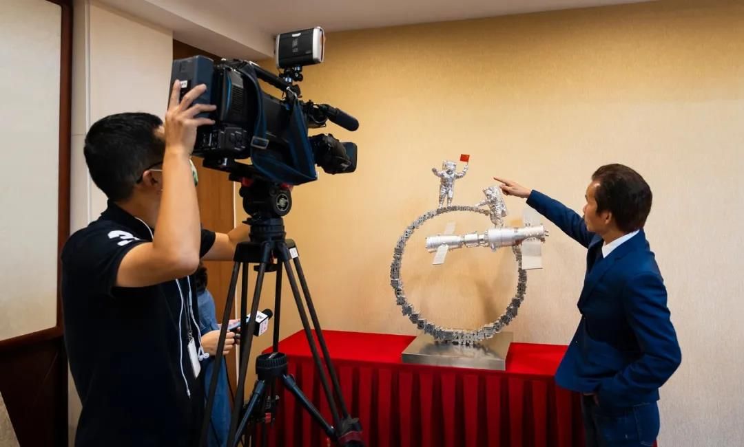 近年来,我国航天事业不断取得新突破,作为雕塑家的他一直关注航天报道,产生了强烈的创作冲动。航天员从天和核心舱成功出仓进行“太空行走”的瞬间激发了他的创作灵感,为获得最直接的印象,身为全国政协委员的他前往西昌卫星发射中心走访调研,历时一个月创作出了作品《九天逐梦》,用艺术致敬中国航天事业。