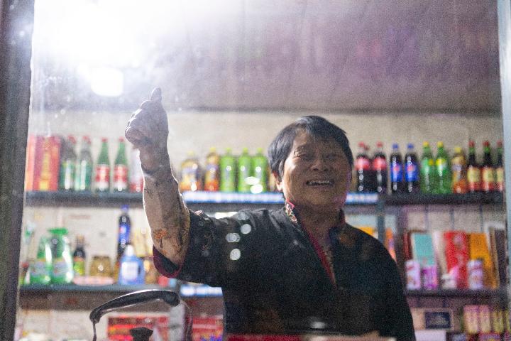 在哈尔滨市巴彦县,人们比手势加油鼓劲。