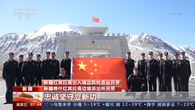新疆红其拉甫出入境边防检查站民警、新疆喀什红其拉甫边境派出所民警:忠诚坚守立新功,砥砺奋斗新征程。边疆有我,请祖国和人民放心,祖国我爱你!
