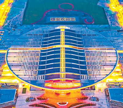 4月22日,灯光照射下的雄安高铁站璀璨夺目。雄安高铁站位于河北省雄安新区雄县城区东北部,是京雄城际铁路规模最大的新建车站。金 伟摄(影像中国)