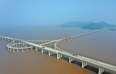 2月4日,宁波舟山港主通道项目舟岱大桥实现全线贯通。姚 峰摄(影像中国)