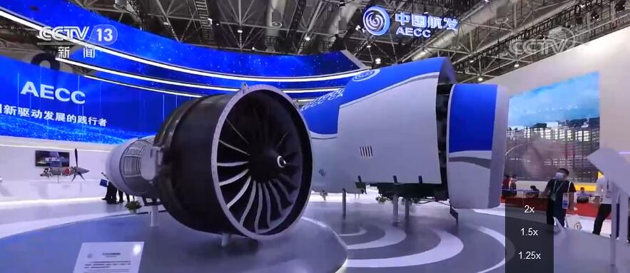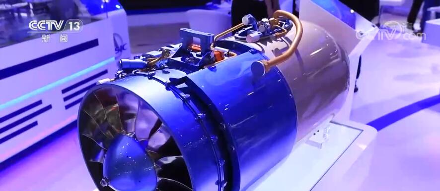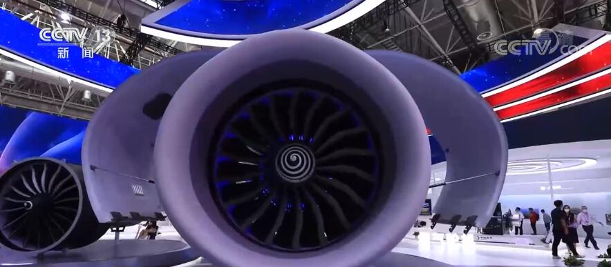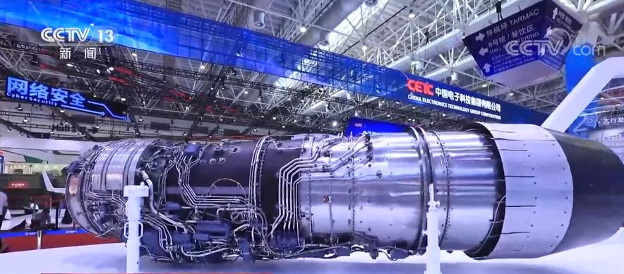 总台央视记者 李厦:在中国航发的展台,首先看到的就是这台“太行”发动机。太行系列发动机是我国国产大型军用航空涡扇发动机。本次展出的这台是太行发动机最新的发展型,这款发动机有两个关键词:大推力、加力式。这也是这款新型发动机的首次亮相。