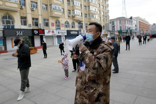 黄文明是巴彦县市场监督管理局在这里的包保干部,他拿着大喇叭奔走喊话,提醒大家保持距离。他告诉做核酸的居民,之前发的小区出门证不好使了,做核酸回去后不要再出门了。当天,巴彦县城区所在的巴彦镇管控升级,要求所有居民足不出户。