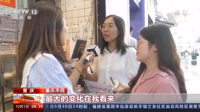 重庆市民:祖国最大的变化在我看来,我们祖国在去年完成了脱贫攻坚,我觉得我们实现了脱贫,这就是一个很大的变化。从我的家庭来说,我觉得我爸爸妈妈不用再那么辛苦地工作,我的弟弟还买了一辆代步车,我觉得我老公,算是耙耳朵,重庆的话耙耳朵,他卡里有余额了,这是很大的变化。