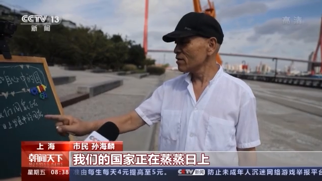 上海市民 孙海麟:我们的国家正在蒸蒸日上,发展中的国家变化太大了,尤其是我们滨江,这里一共有42公里长了,为了老百姓能够有个很好的去处。开发起来,绿化弄起来,这样一弄投资多多少少。
