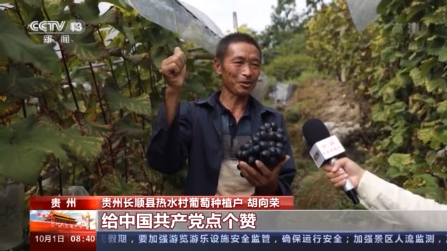 贵州长顺县热水村葡萄种植户 胡向荣:小康生活,给脱贫攻坚点个赞,给中国共产党点个赞。