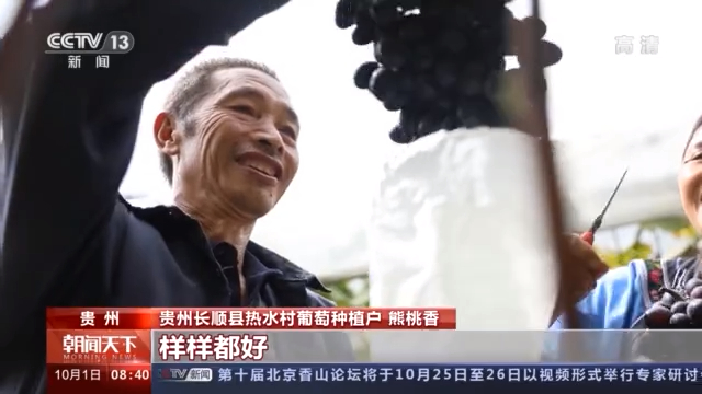 贵州长顺县热水村葡萄种植户 熊桃香:中秋节那几天生意有点好,有三四天,一天卖一万多。