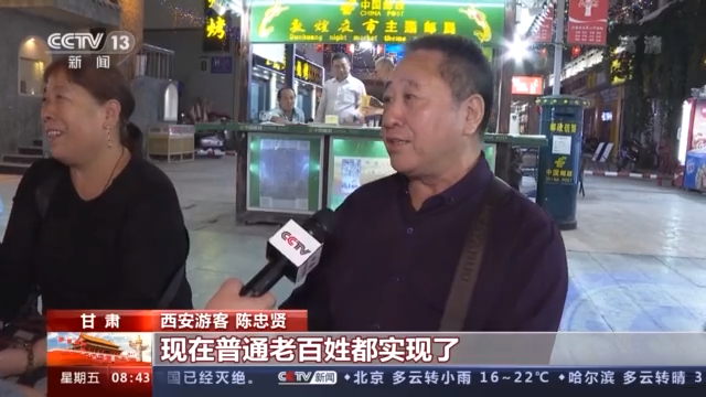 西安游客 陈忠贤:我呀,作为一个人,我觉得生活在中国,我感觉很幸福。因为啥?说最近的,闹疫情期间,国外什么情况,我们中国什么情况,这大家心里都很明白。所以作为中国人,我们很自豪。包括多少次的神几神十二,都上天了,都回来了,好!