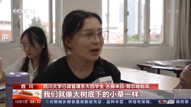 四川大学行政管理系大四学生 古丽米拉·努尔地别克:我们国家在我心中是一棵枝繁叶茂的大树,我们就像大树底下的小草一样。