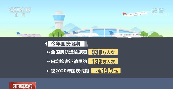 民航方面,今年国庆假期,全国民航预计运输旅客930万人次,日均旅客运输量约133万人次,较2020年国庆假期下降19.7%。全国预计执行航班115570班次,日均航班量16510班,较2020年国庆假期下降2.93%。