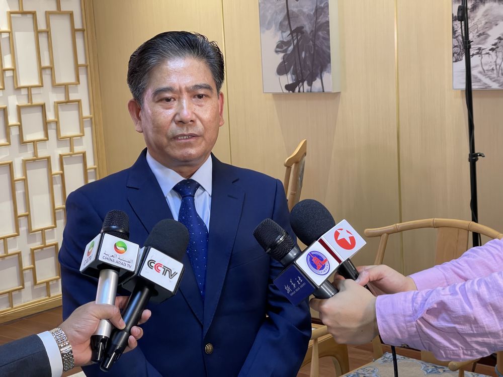 9月29日,迪拜世博会中国政府总代表、中国贸促会副会长张慎峰在阿拉伯联合酋长国迪拜接受新华社记者采访。(新华社记者苏小坡摄)