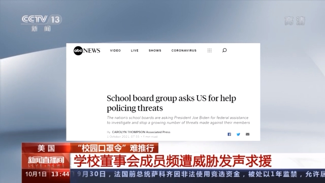 据美国广播公司报道,9月30日,美国全国中小学董事会协会写信,请求联邦政府协助调查、制止针对学校董事会成员的威胁甚至暴力事件,保护学校董事会成员的人身安全。据报道,美国全国中小学董事会协会代表美国14000个公立学校学区的超过9万名学校董事会成员。在写给总统拜登的信中,引述了发生在美国多个州的超过20起针对学校董事会成员的“威胁”“骚扰”和“恐吓”等行为。协会要求联邦政府参与调查这些事件,要求美国司法部、联邦调查局、国土安全部等部门监测“威胁”等级,评估这些“威胁”给学生、教育者、学校董事会成员以及学校建筑带来的“风险级别”。协会在信中说,针对公立学校工作人员的恶意、威胁及暴力行为不断增加,这些行为应被视为“国内恐怖主义”和“仇恨犯罪”。