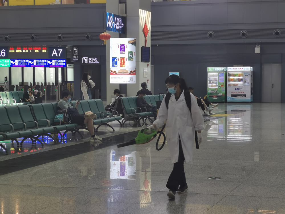 国庆黄金周期间,西安局集团公司常态化严格抓好铁路疫情防控,将持续做好候车厅、售票处等场所通风、保洁和消毒,加强电梯扶手、门把手、进站闸机、安检设备、卫生间等重点部位消毒,努力为旅客营造安全健康的候车和乘车环境。