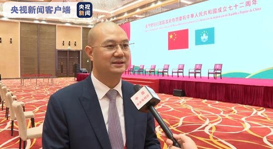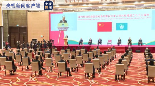 升旗仪式后,澳门特区政府在中国与葡语国家商贸合作服务平台综合体举行酒会。澳门各界人士齐聚一堂,共庆新中国成立72周年。澳门特区行政长官贺一诚在致辞中说,历史和现实证明,祖国是澳门繁荣稳定的坚强后盾,是推动澳门发展的不竭动力源泉。