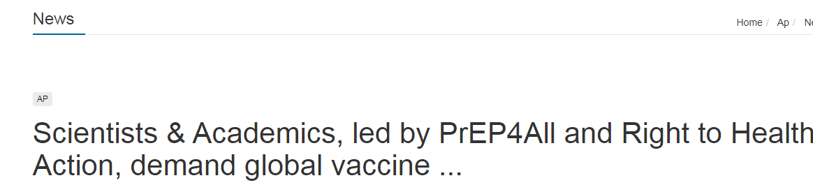 “美国政府没有在疫苗问题上展示应有的领导力,而是在贪婪面前退缩”