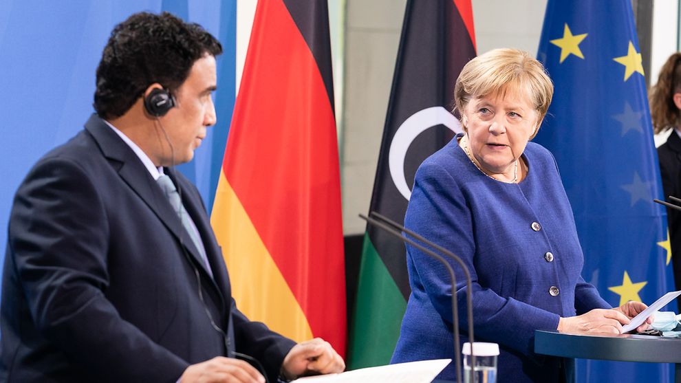 当地时间10月1日,德国联邦总理默克尔在柏林会见了到访的利比亚总统委员会主席穆罕默德·门菲。默克尔敦促外国军队和雇佣军尽快从利比亚撤出,并强调利比亚的未来问题必须由利比亚军队和利比亚民众决定,而不是由外国势力影响决定。