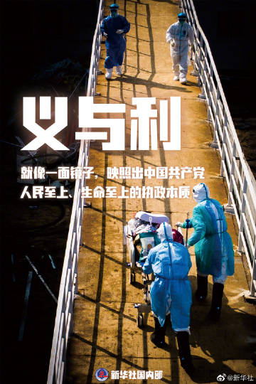 #统筹战疫与发展的中国之道#【义在利前,是大疫面前的中国选择】新华社近日播发《新华述评:人民至上 生命至上——从#精准处理疫情防控与经济发展的辩证关系#看中国之道》。文章指出,中国共产党的义,是为了人民生命,宁可牺牲暂时和局部的经济利益。义与利,就像一面镜子,映照出中国共产党人民至上、生命至上的执政本质。中国用行动证明,把人民的利益放在最高位置,为了人民、依靠人民,是中国共产党应对风险挑战的根本力量来源。网页链接
