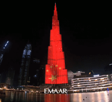 当晚,迪拜哈利法塔发布了一组以中国国庆为主题的灯光秀。五星红旗亮相塔身,色彩绚丽夺目,并配以威武雄壮的中华人民共和国国歌,中、英文“国庆节快乐”的字幕交替呈现,向中国政府和人民送上节日的祝福。(总台记者 孙建)