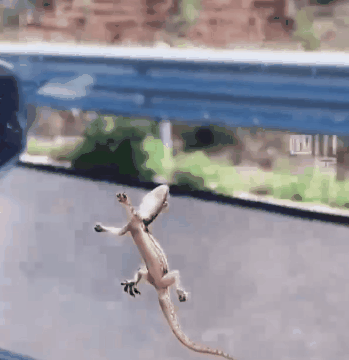·国庆前一天,一网友发布视频,车在高速路上行驶时,突然发现一壁虎在车窗牢牢扒住,被吹到变形。网友:像极了国庆假期第一天路上的我!