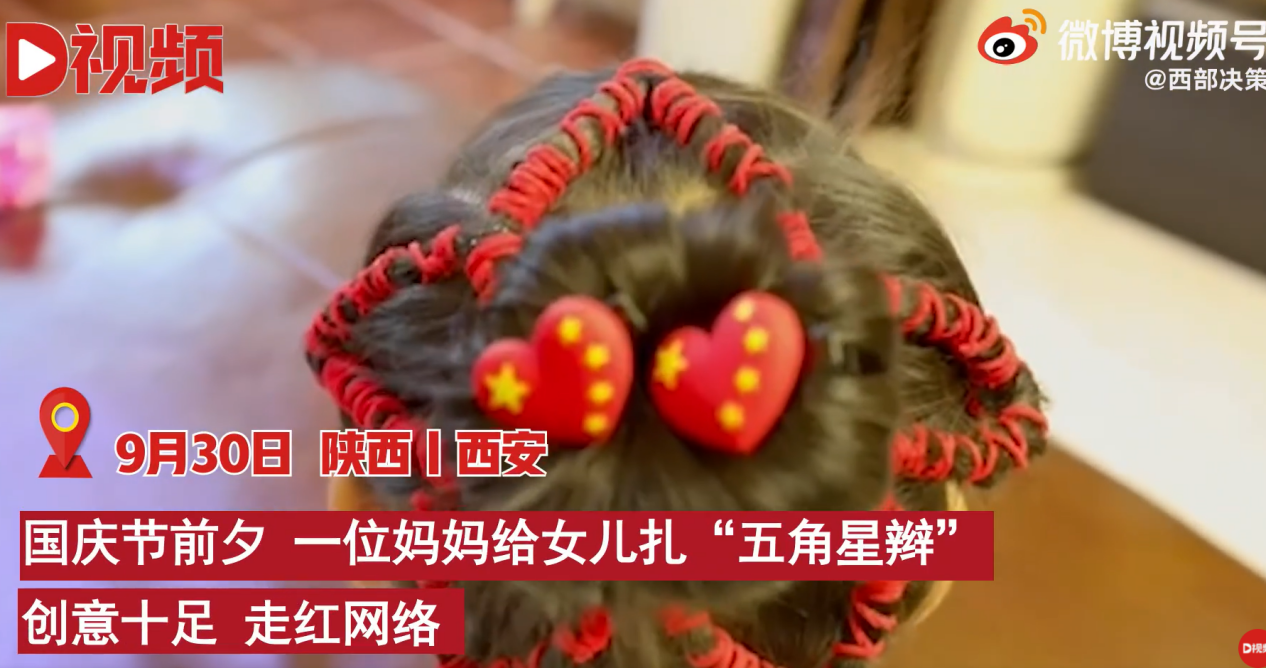 ·国庆节前夕,陕西西安一位妈妈给女儿扎“五角星辫”,创意十足,走红网络。