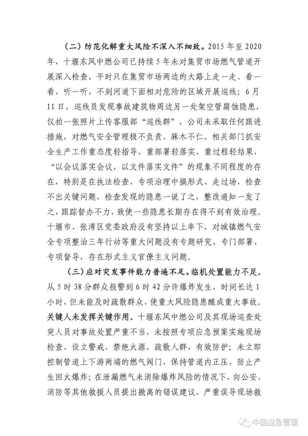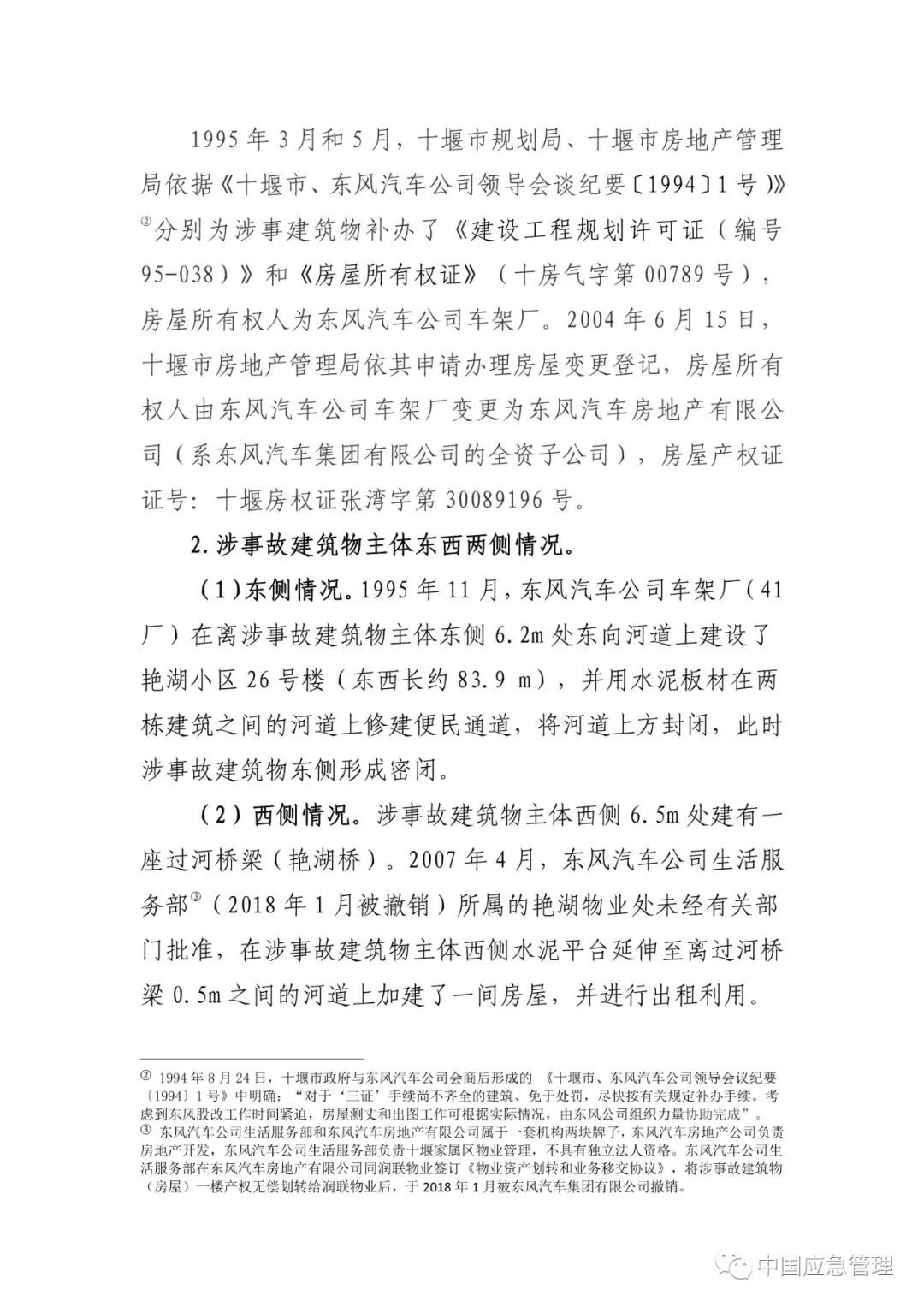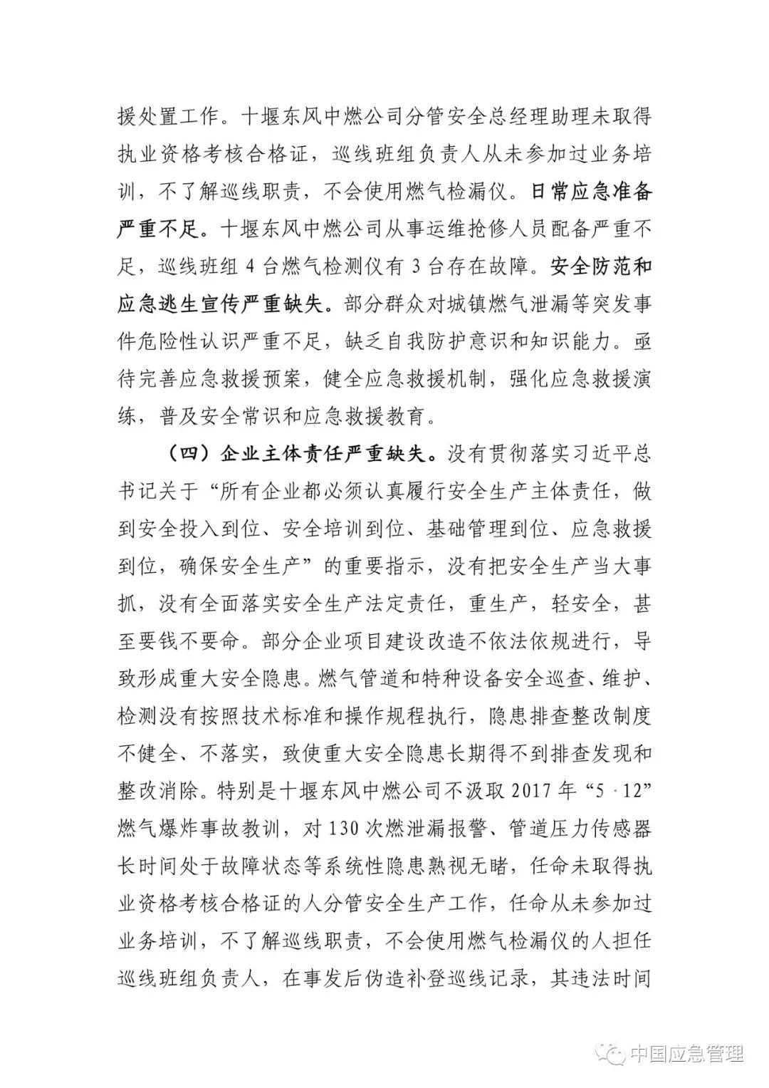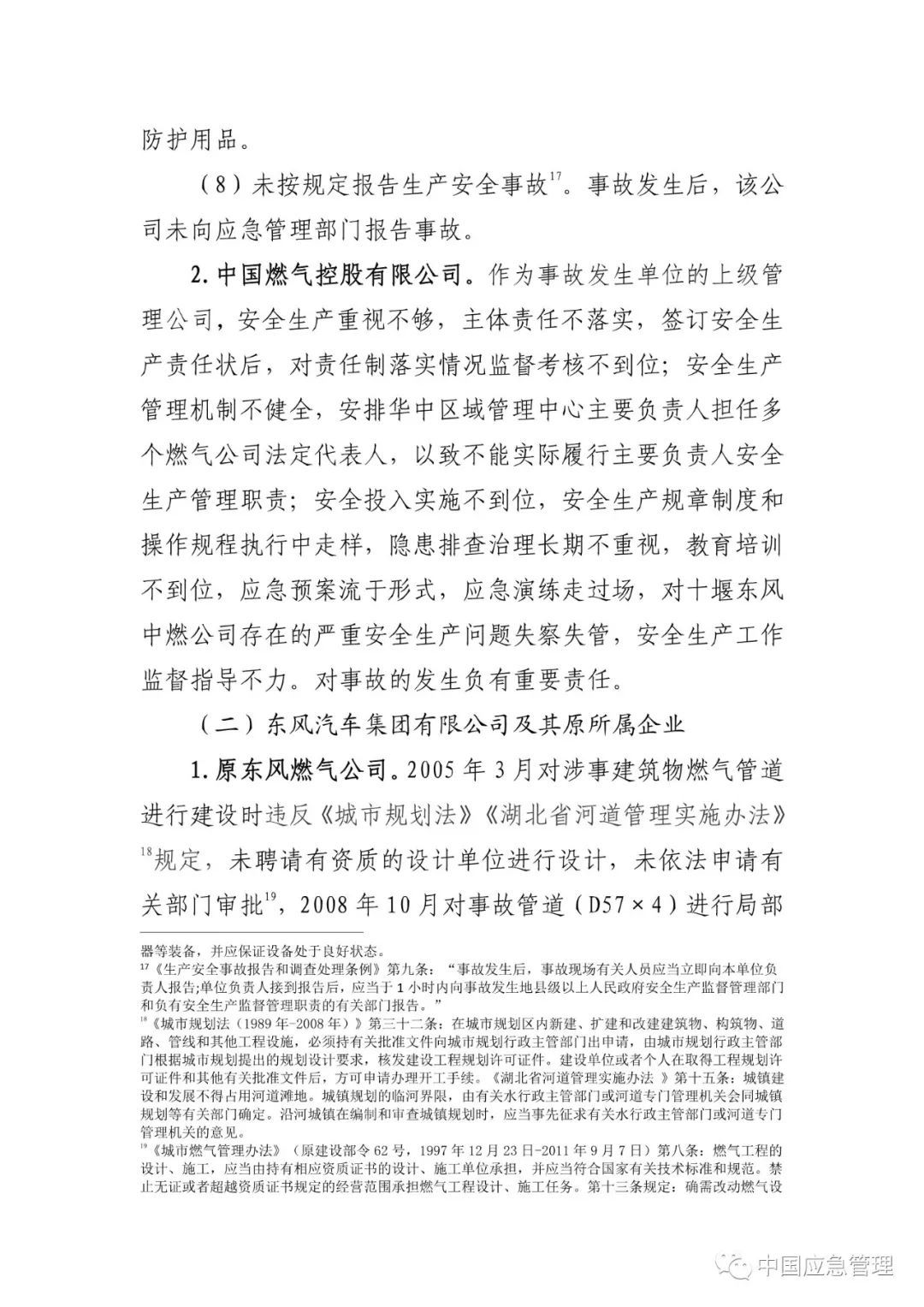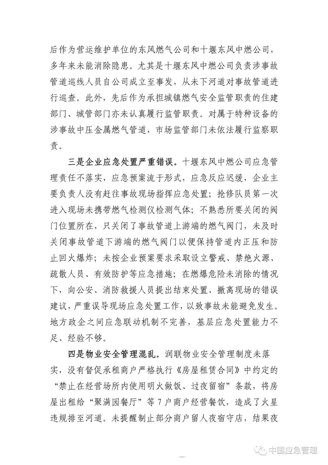 调查报告显示,涉事故建筑物由东风汽车房地产有限公司向润联物业划转时,未提示或告知下方有燃气管道穿过,其中现在负责运营维护事故管道的十堰东风中燃公司,从未对事故管道进行巡查,事发后巡线员为逃避责任追究,伪造补登了巡线记录。