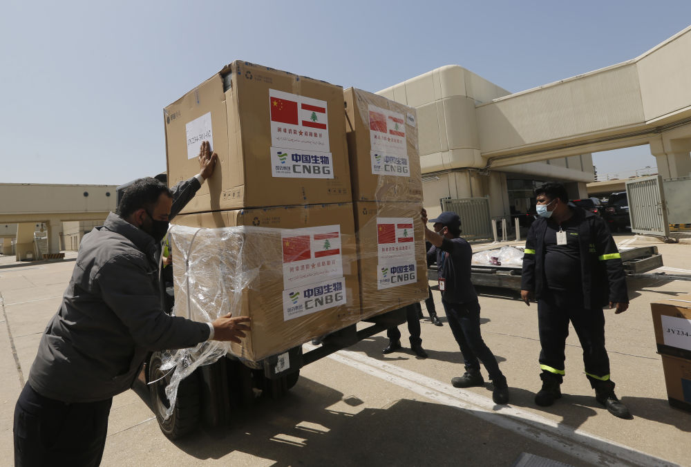 4月6日,中国向黎巴嫩政府和军队援助的新冠疫苗运抵贝鲁特拉菲克·哈里里国际机场。新华社发(比拉尔·贾维希摄)
