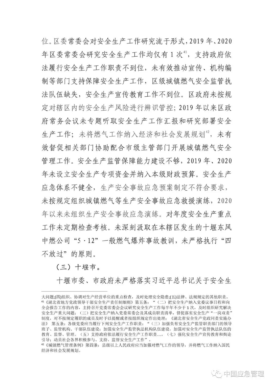 9月30日,湖北省应急管理厅官方网站发布了《湖北省十堰市张湾区艳湖社区集贸市场“6·13”重大燃气爆炸事故调查报告》,事故调查组认定,这起重大燃气爆炸事故是一起重大生产安全责任事故。