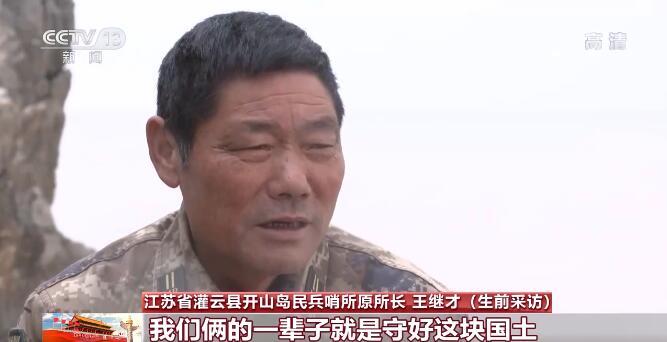 江苏省灌云县开山岛民兵哨所原所长 王继才(生前采访):家就是岛,岛就是国。我们俩的一辈子就是守好这块国土。开山岛虽小,它是中华人民共和国的一部分,我每天要把五星红旗高高升起在开山岛上空。