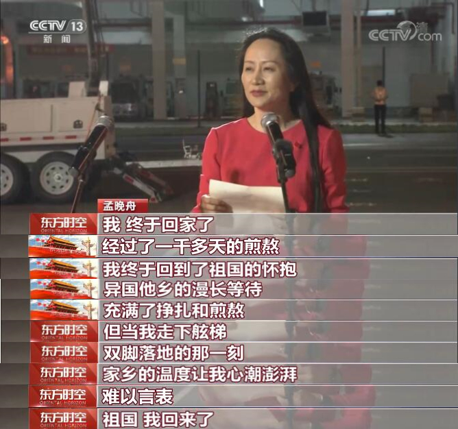 “月是故乡明,心安是归途”。这就是孟晚舟9月25日朋友圈里的一段文字。发这段文字时,接她回家的中国政府包机正飞越北极上空,向着家的方向前行。此时,她已阔别祖国1000多天。终于回来了!飞机已经滑行在祖国的大地上。她说,无数次出发,无数次归家,唯有此次让我热泪盈眶。为什么?听听她落地后说出的答案。