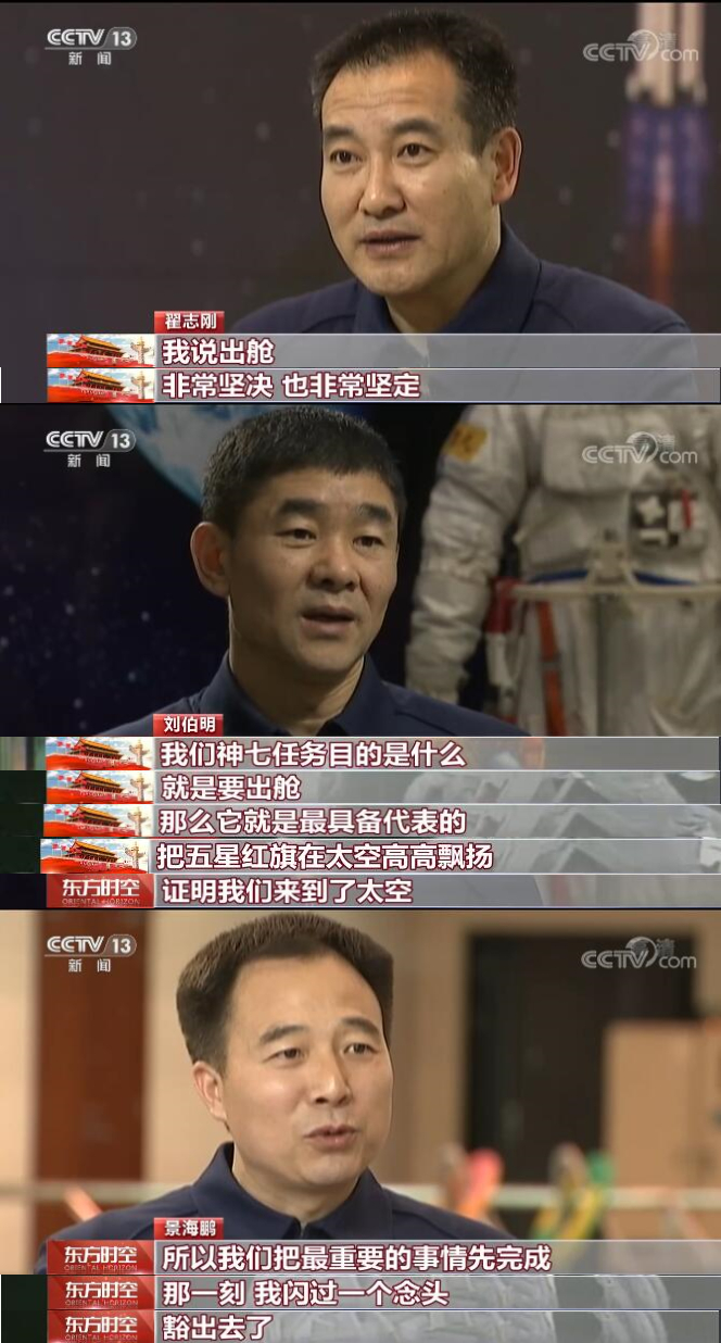 出舱的过程其实并不顺利,花费了近7分钟才打开舱门,轨道舱火灾的警报声又响了起来。为了五星红旗在太空的第一次飘扬,航天员们下定了决心。