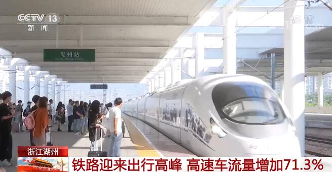 在浙江湖州站,出行高峰昨天同样出现。客流主要集中在杭州、金华、宁波方向。湖州境内各条高速也迎来大流量,假期第一天高速车流量与平时相比增加71.3%,各条高速车流总量达19.6万次。